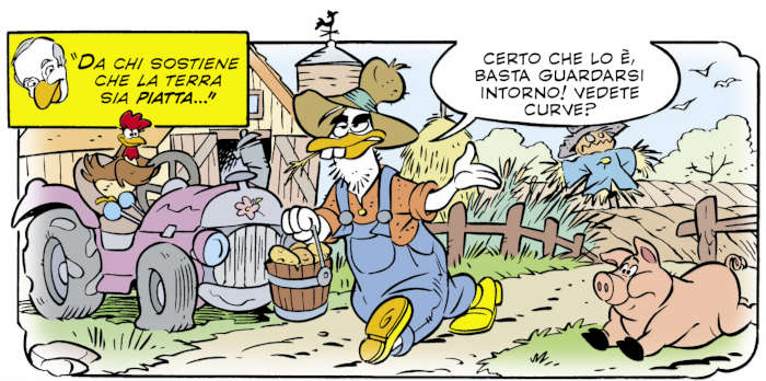 Corre l’obbligo di spendere giusto qualche riga sui terrapiattisi, tornati prepotentemente di moda negli ultimi tempi. D’altra parte Vitaliano li ha decisamente presi di mira in Che fine ha fatto Peter Quarky?