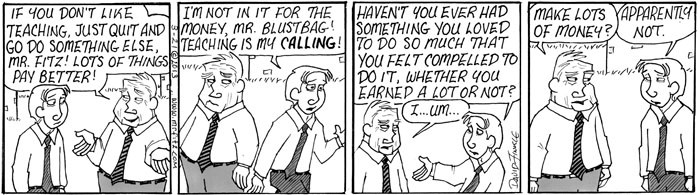 – Se non ti piace insegnare, semplicemente lascia e fai qualcos’altro, Mr. Fitz! Ci sono molte attività che pagano meglio!