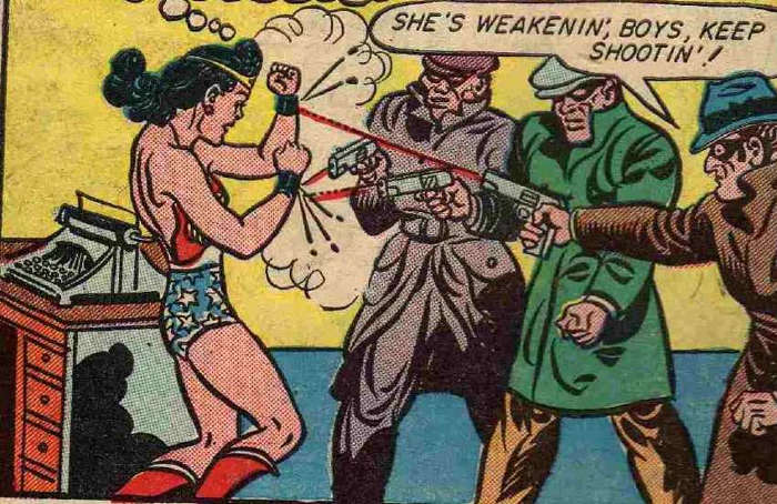 In tutto questo, però, non bisogna escludere il fattore umano: la capacità di notare i proiettili in arrivo, i riflessi per reagire prontamente e i muscoli per resistere alle forze impulsive e generare le energie necessarie per opporvisi. Ed è soprattutto in questi dettagli che risiede l’essenza di un eroe come Wonder Woman.