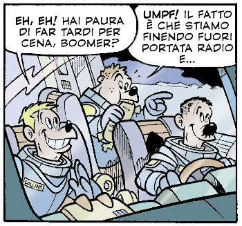 Interessante, in questo senso, l’incidente che occorre agli astronauti nella scena iniziale de Il castello sulla Luna: la rottura dell’asse del veicolo cingolato su cui viaggiano risulta abbastanza improbabile, considerando la bassa gravità terrestre, a meno di non considerare un sabotaggio o una costruzione al risparmio, cosa in qualche modo da escludere visto che analogo incidente occorso più avanti a Topolino & company si conclude senza alcuna rottura ((Ovviamente è sempre possibile un errore dovuto alle necessità narrative, dunque perdonabile fino a un certo punto)).