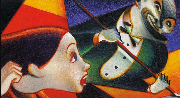 Il procedimento su Hyde, dunque, sembra esattamente l’opposto: se in Hansel e Gretel si “restaura” l’originale spirito gothic della fiaba tramite illustrazioni nerissime, per Hyde non si scelgono – come sarebbe prevedibile – le atmosfere cupissime e magari monocromatiche che rimanderebbero, tra l’altro, all’incisione e illustrazione originaria dell’opera.