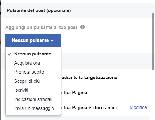 Scegli l’opzione corretta e crea un pulsante che colleghi l’inserzione a una pagina effettivamente dedicata a ciò che stai promuovendo. Non fare l’errore di limitarti a inserire l’indirizzo della home-page del tuo sito, aspettandoti che sia il cliente a trovare il prodotto o le informazioni su ciò che reclamizzi.