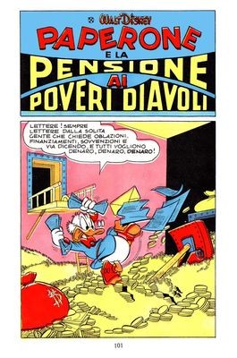 Ecco allora Paperone e la pensione ai poveri diavoli, una godibile avventura del 1961 nella quale la strega Nocciola fa vivere un’esperienza surreale al miliardario che ha cercato di ingannarla: le scene nella Paperopoli del futuro sono veramente suggestive e la caratterizzazione di Paperone risulta accattivante e vincente.