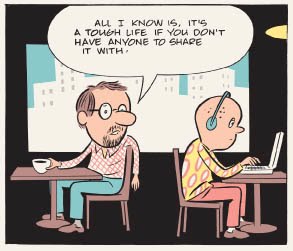 Dalla costruzione di una situazione, alla battuta finale che taglia, nega, spiazza completamente l’illusione o le riflessioni delle vignette precedenti, la dimensione della strip diventa in ultima analisi l’unica lente davvero efficace attraverso cui raccontare piccole e grandi storie di ogni giorno.