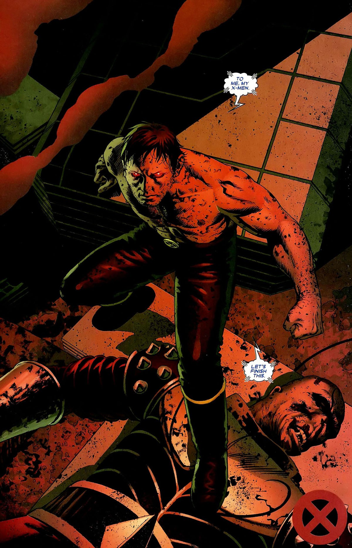 Astonishing X-Men #23 (tav. 22) di Josh Whedon, John Cassaday e Laura Martin (Marvel Comics, 2008 – Pubblicazione italiana: Marvel Omnibus # 10 – Astonishing X-Men: Inarrestabili, Panini Comics, 2010)
