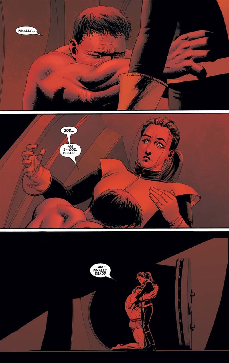 È una sequenza praticamente muta, tutta sulla spalle di Cassaday, che con una serie di inquadrature mirate blocca lo sguardo di chi legge su ogni singola vignetta, impedendogli di “sbirciare” avanti, così che quando si arriva alla fine l’effetto è ancor più dirompente.