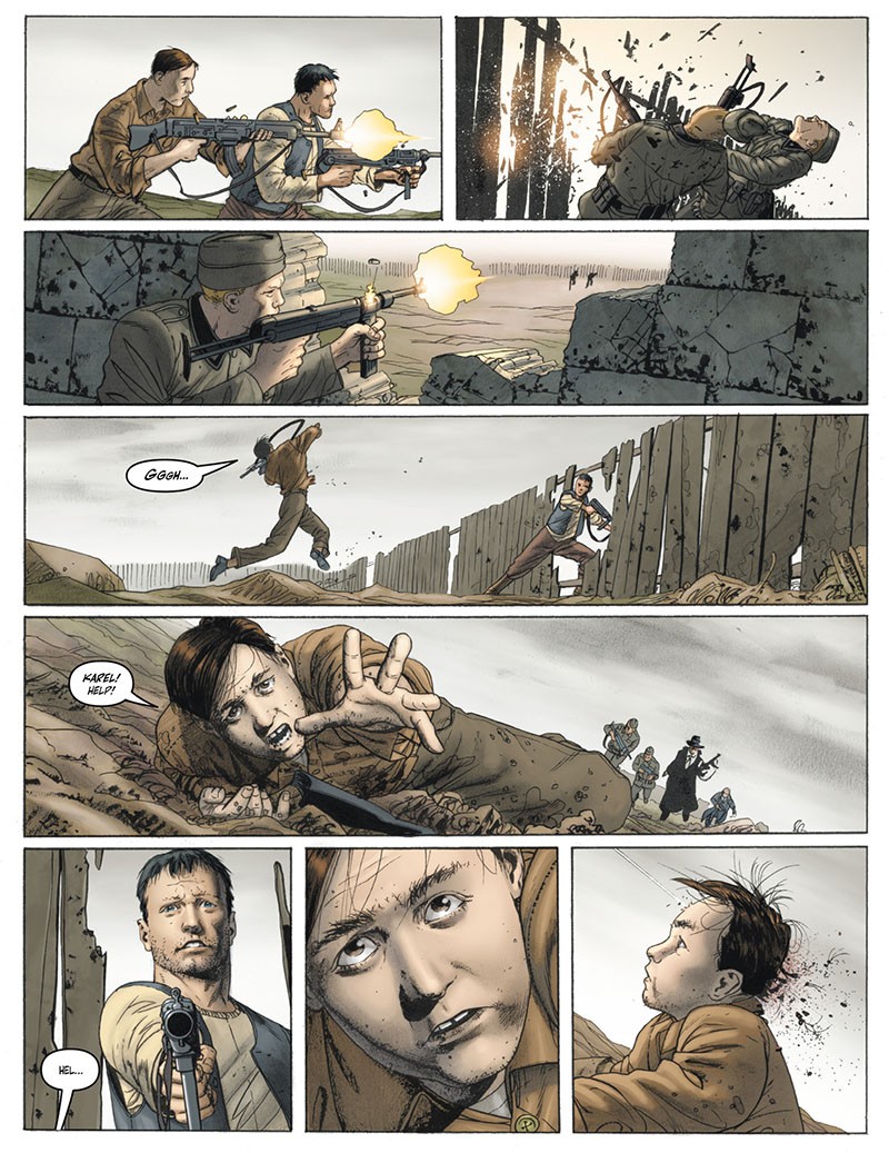 È Fabien Nury ad accompagnare John Cassaday in questa sua esperienza nel fumetto franco-belga, scrivendo una storia a tinte horror ambientata al tempo della Seconda Guerra Mondiale. Il primo volume si apre con due sequenze dense di violenza e la pagina 13 è la crudele rappresentazione di quanto la guerra possa essere spietata.