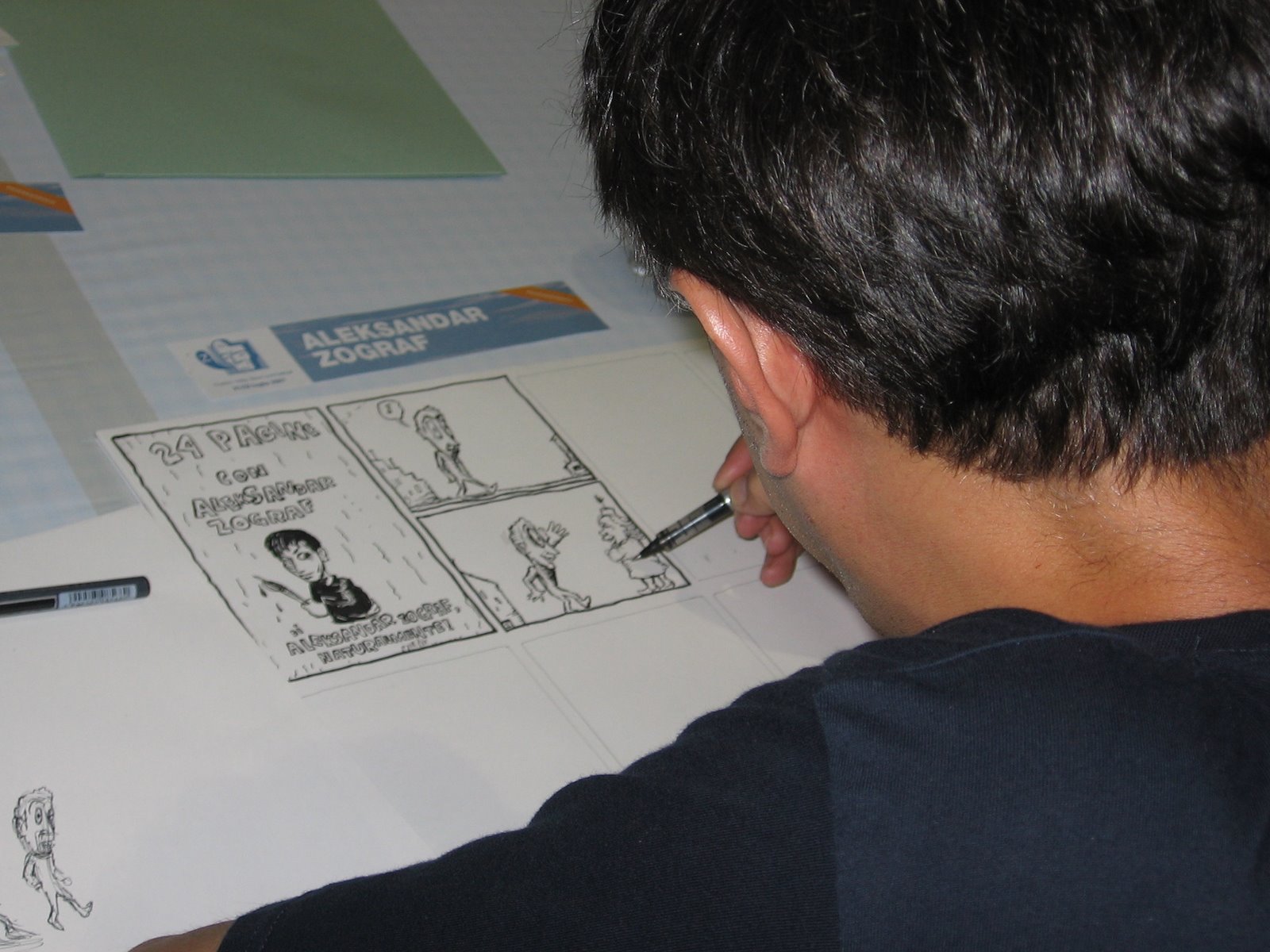 Forse il più famoso fumettista serbo al mondo, Alexandar Zograf è un fumettista undergound e giornalista di musica rock, di Pancevo, cittadina nei pressi di Belgrado, che lavora per diversi giornali indipendenti fin dal 1986. Nel 1991 “Sasa” pubblica un minicomic autoprodotto, Alas! Comics, che lo introduce sulla scena editoriale nordamericana. In seguito pubblica per le edizioni Fantagraphics, collabora alla rivista diretta da Robert Crumb Weirdo, pubblica i suoi lavori nel circuito underground di una decina di paesi del mondo e in Italia viene pubblicato su Mano. Nelle sue tavole convivono le atmosfere di guerra, nella decomposizione della ex-Jugoslavia, e i suoi incubi. Nel 1996 pubblica negli Usa Psychonaut, e si mette all’opera per raccogliere le sue visioni, insieme a Gordana, per l’etichetta Kitchen Sink. Il Centro Fumetto Andrea Pazienza ha pubblicato il suo primo comic book italiano, Diario, cronaca della guerra civile nella ex-lugoslavia, nella collana Schizzo presenta. Con Saluti dalla Serbia, portò in fumetto quello che non si raccontava della guerra in Serbia con scioccante schiettezza. Ha vinto numerosi premi, tra cui il “Premio speciale” a Lucca Comics nel 1997 e l'”Hector Oesterheld Award” a Roma nel 1999. Ha collaborato con innumerevoli riviste anche italiane ed è stato protagonista di diverse mostre.