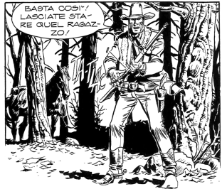 Tex è un combattente, come si suol dire, “nato”. A pugni, calci, con il coltello, arco, pistole, fucile… è sempre il migliore nel battersi e nel difendersi. Eppure, invece di compiacersi delle sue capacità, sembra talvolta restio ad usarle oppure ad usarle per fare molto male. Come lo vedete usare la violenza e le armi?