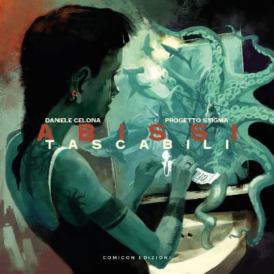 Abissi tascabili è il disco a fumetti di Daniele Celona e del Progetto Stigma. Un titolo che richiama non a caso quello di una possibile collana letteraria. Brani che si avvicinano decisamente alla veste e alla struttura del racconto breve, cerchi di storie concentriche ai confini della realtà. Fantascienza, mitologia, favola si intrecciano creando un tessuto narrativo che, tra le righe, fa da base per un’analisi trasversale dell’uomo moderno e dei suoi mali, degli abissi che si nascondono appena sotto la superficie di una quotidianità fatta di routine e smartphone.