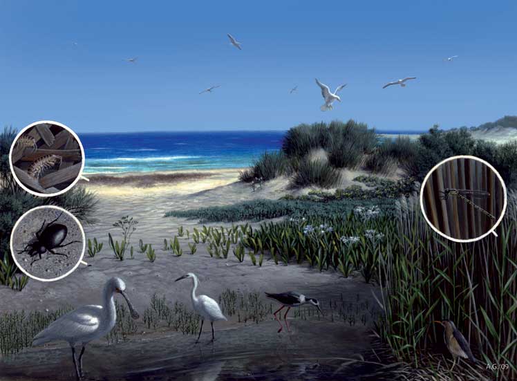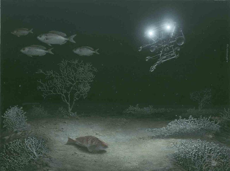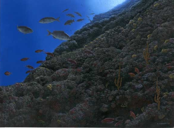 Ha! Ha! Infatti è molto difficile. Beh, l’illustrazione scientifica, almeno per come lavoro io, è un campo che un po’ somiglia al fumetto (o forse sono io che ci porto dentro le mie esperienze passate di fumettista); in sostanza, devi immaginare una specie di brevissima storia, di una sola immagine, che racconti chi è quell’animale che stai raffigurando, dove vive, cosa mangia. Devi pensare sempre: ”Cosa capirebbe, un profano assoluto della materia, guardando questo disegno”? Devi quindi evitare inquadrature troppo complicate o poco chiare, eliminare le ambiguità visive (sovrapposizioni di soggetti dove non si capisce bene la forma degli elementi), illuminare il paesaggio con luci tali da evidenziare le forme, studiare molto ma molto bene i soggetti prima di dipingerli.