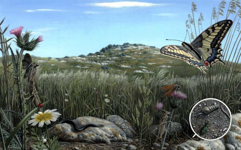 Beh, si, è un po’ il concetto che ho espresso parlando di Burian, della cultura-spettacolo, che affascina ed insegna. Nelle mostre, al di là dell’aspetto scientifico (nelle illustrazioni naturalistiche è ovvio l’aspetto culturale… ) ho curato anche un altro fattore didattico: il “come-si-fa”. Ovvero: non solo ho voluto esporre i quadri finiti, ma anche i bozzetti, gli schizzi preparatori, le fasi di lavorazione. Ho voluto mostrare anche cosa c’è “dietro” ad un’illustrazione dipinta al computer, come si arriva al prodotto finale. Le mie mostre non devono essere solo un’autocelebrazione, non mi piace dirmi “Uh, guardate quanto so’ bbravo!”. Voglio che i visitatori interagiscano con i miei lavori, mi facciano domande, che la visita serva a qualcosa anche a loro. Se si tratta di disegno scientifico poi, voglio che mi facciano domande sull’ecologia, sulla natura in pericolo… Dissi nella presentazione di una mostra come, illustrando una scena con le erbe e gli animali dei campi, mi accorsi di quel piccolo prezioso mondo che fino ad allora avevo calpestato con noncuranza… Conoscere può essere il primo passo verso l’amore per le cose… E se ami qualcosa, poi lo difendi. Conoscere il mondo naturale, può servire a difenderlo. E dovremmo sbrigarci, i danni fatti sono già troppi.