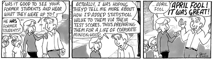 – In realtà, speravo che mi avrebbero detto di più su come avessi aggiunto loro valore statistico grazie i loro punteggi ai testi, preparandoli così per una vita da minion aziendali.