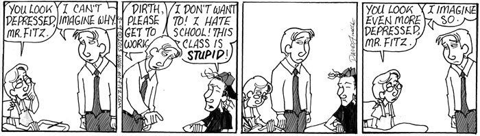 Con la quarta striscia il depresso professor Mr. Fitz di David Finkle arriva finalmente in classe: