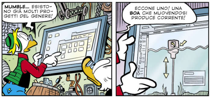 Se confrontiamo alcuni dei dispositivi odierni sviluppati per le wave farm, non ci sono molte differenze rispetto al progetto disegnato da Lucio Leoni ne L’ambiziosa trainsoceanica, almeno per quel che riguarda il concetto dell’invenzione. La più simile è indubbiamente la boa di assorbimento.