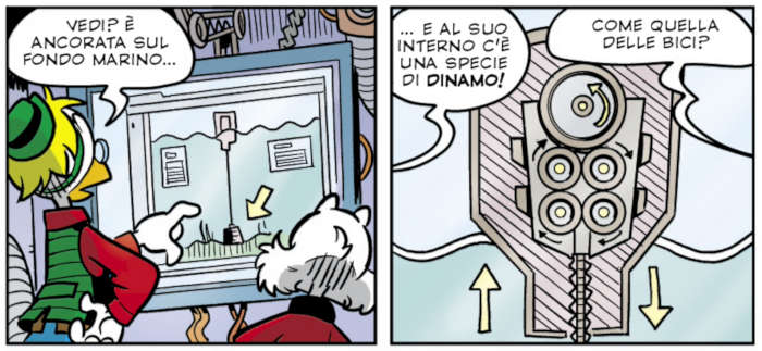 Come nella storia di Macchetto e Leoni, è però possibile estrarre energia anche dalle onde del mare. Le onde sono generate dal passaggio del vento sulla superficie dell’acqua. Se le onde si propagano più lentamente della velocità del vento, c’è un trasferimento di energia dal vento alle onde. Sia la differenza di pressione dell’aria tra il lato sopravento e quello sottovento di una cresta d’onda, sia l’attrito sulla superficie dell’acqua, causano la crescita delle onde.