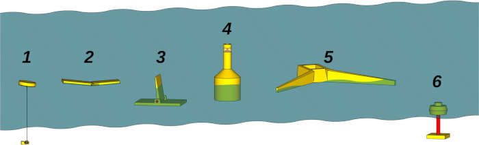 Il primo possiede tipicamente un punto fisso ancorato al fondale e un altro libero di muoversi. L’energia è collezionata dal moto relativo del corpo rispetto al punto fisso.