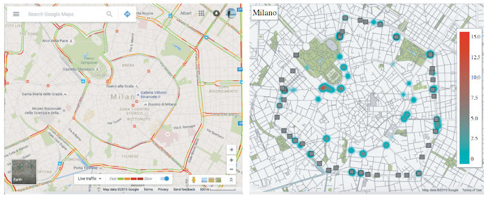 A sinistra i dati di Google Maps a destra le previsioni del modello.