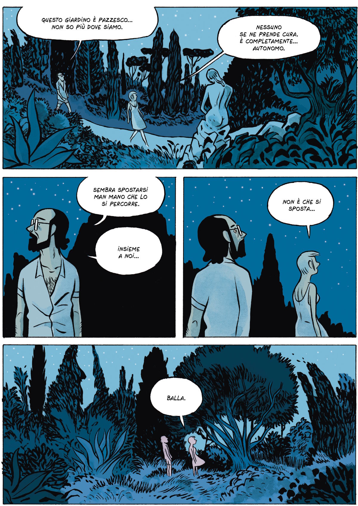 Proprio come non scrivo mai la sceneggiatura prima, ma improvviso man mano che la storia procede, i momenti in cui disegno i paesaggi corrispondono ai momenti in cui ho bisogno di “prendere” respiro nel libro. Faccio una pausa. Chiedo ai miei personaggi di fare una pausa con me e di osservare ciò che ci circonda… quei momenti di silenzio sono parte integrante del risultato finale.