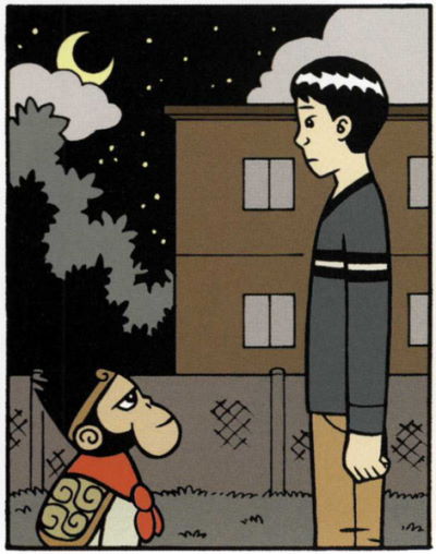Ma mentre quest’ultima è opera che definiremmo in sintonia con il sogno americano, American Born Chinese è invece un racconto tripartito le cui storie, all’apparenza slegate, mettono in luce le discriminazioni cui sono soggette le minoranze negli Stati Uniti. In una il protagonista è Jin Wang, ragazzo americano figlio di emigrati cinesi, che proprio per le sue origini ha difficoltà ad inserirsi a scuola. Nella seconda invece è Danny, ragazzo americano che vede minata la sua popolarità dall’arrivo dell’odioso cugino Chin-Kee, che incarna tutti gli stereotipi più comuni sui cinesi. Infine la terza storia, che si rifà alla letteratura classica cinese, è un libero adattamento della leggenda del Re Scimmia.