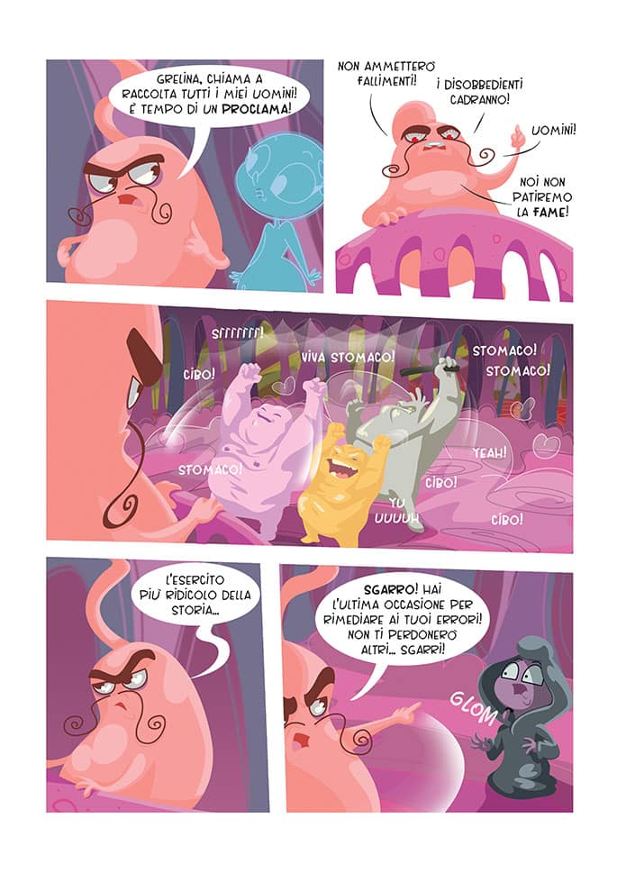 Tutte le avventure si svolgono a Metrorganopolis e vedono protagonisti gli organi vitali di Felinia. Il primo libro, intitolato La dittatura mangiona, vede protagonista lo stomaco che, dopo aver instaurato una dittatura, mette in pericolo tutto l’apparato con una completa sregolatezza alimentare.