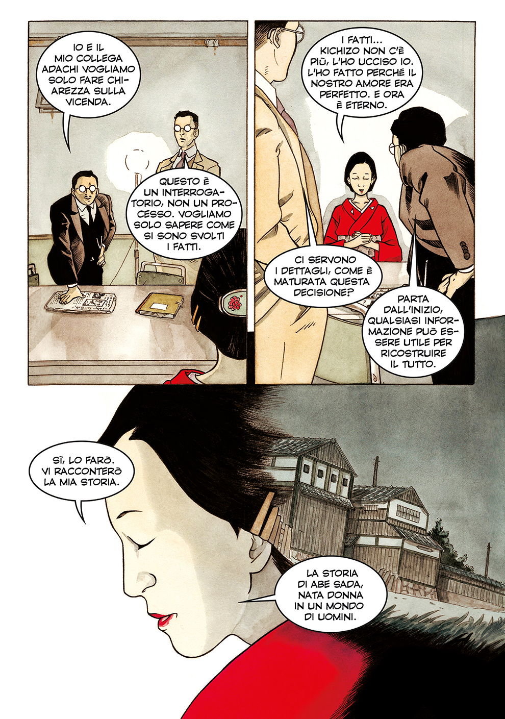 In anteprima per Lo Spazio Bianco le prime tavole di Abe Sada – Il fiore osceno, realizzato da Michele Botton e Pietro Sartori, edito da BeccoGiallo.