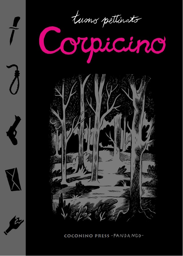 A dieci anni dalla prima pubblicazione, e due anni dopo la scomparsa dell’autore, il capolavoro da tempo introvabile di Tuono Pettinato rivive in una nuova edizione di pregio voluta da Coconino Press, insieme alla Fondazione intitolata a Tuono, per riproporre ai lettori di oggi uno dei graphic novel più importanti degli ultimi anni. Corpicino è un gioiello di umorismo nero, e al tempo stesso una profonda e sempre attuale riflessione sulla società contemporanea e sui suoi lati più oscuri. Inizia con il bosco e finisce con l’abisso, i luoghi altri, dove la civiltà non esiste e la morte avviene. Tra il bosco e l’abisso si dispiega il mondo dove viviamo noi, tutti, ed è lo spazio dell’orrore e del ridicolo. Questa, ridotta all’essenziale, è la mappa di un libro fondamentale, che indaga, pone domande e ci rivela verità scomode mentre fa scorrere in sottofondo, pagina dopo pagina, i titoli di surreali news che fanno ormai parte della nostra quotidianità.