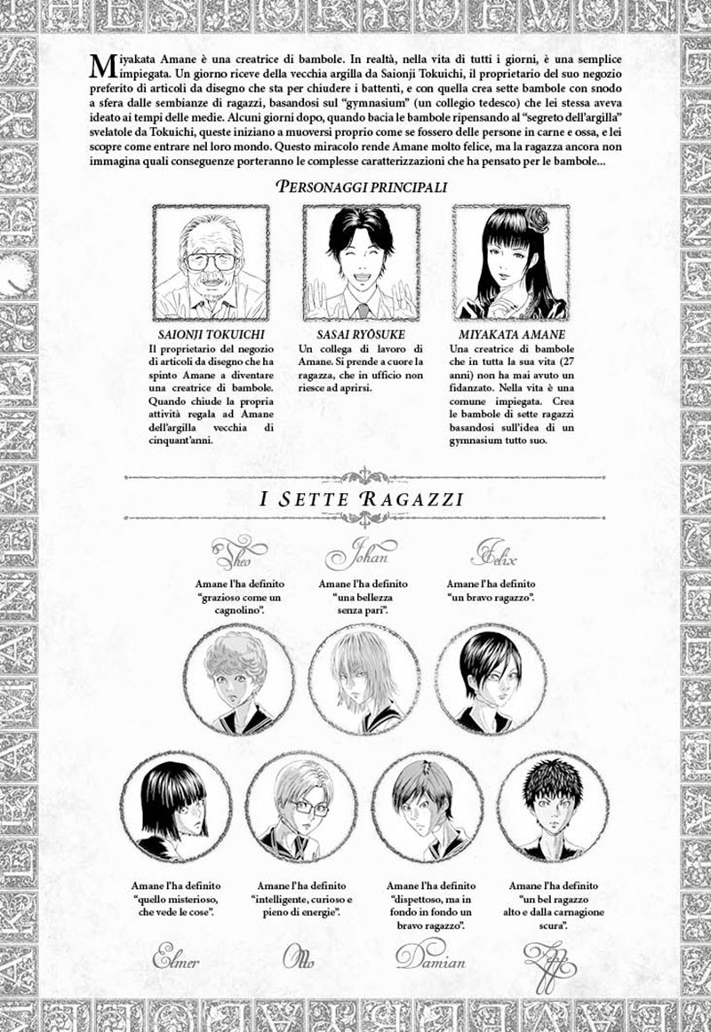 Amane è un’impiegata come tante. A ventisette anni vive sola, non ha un fidanzato e nemmeno degli amici, perché si sente “incapace di socializzare”. I colleghi la trovano strana, tranne Sasai, l’unico che dimostra interesse per lei. Amane coltiva però una passione che la rende felice: costruire con l’argilla bambole iperrealistiche che hanno le fattezze di giovani e bei ragazzi. Per una mostra ne crea sette: Felix, Johan, Theo e gli altri, tutti adolescenti allievi di un collegio tedesco del 1970, un immaginario “Gymnasium” da lei inventato quando era ancora una studentessa. Ispirandosi ai celebri manga di Hagio Moto, Amane ha scritto in un quaderno le storie e i caratteri dei personaggi del suo mondo di fantasia. Ma un giorno le sue bambole prendono misteriosamente vita, e ciascun ragazzo comincia a comportarsi secondo la personalità immaginata dalla sua creatrice. Amane, inoltre, scopre di poter entrare nel mondo in miniatura del collegio e parlare con i suoi abitanti. Tra loro nascono emozioni, sentimenti, passioni, e le cose si complicano parecchio.