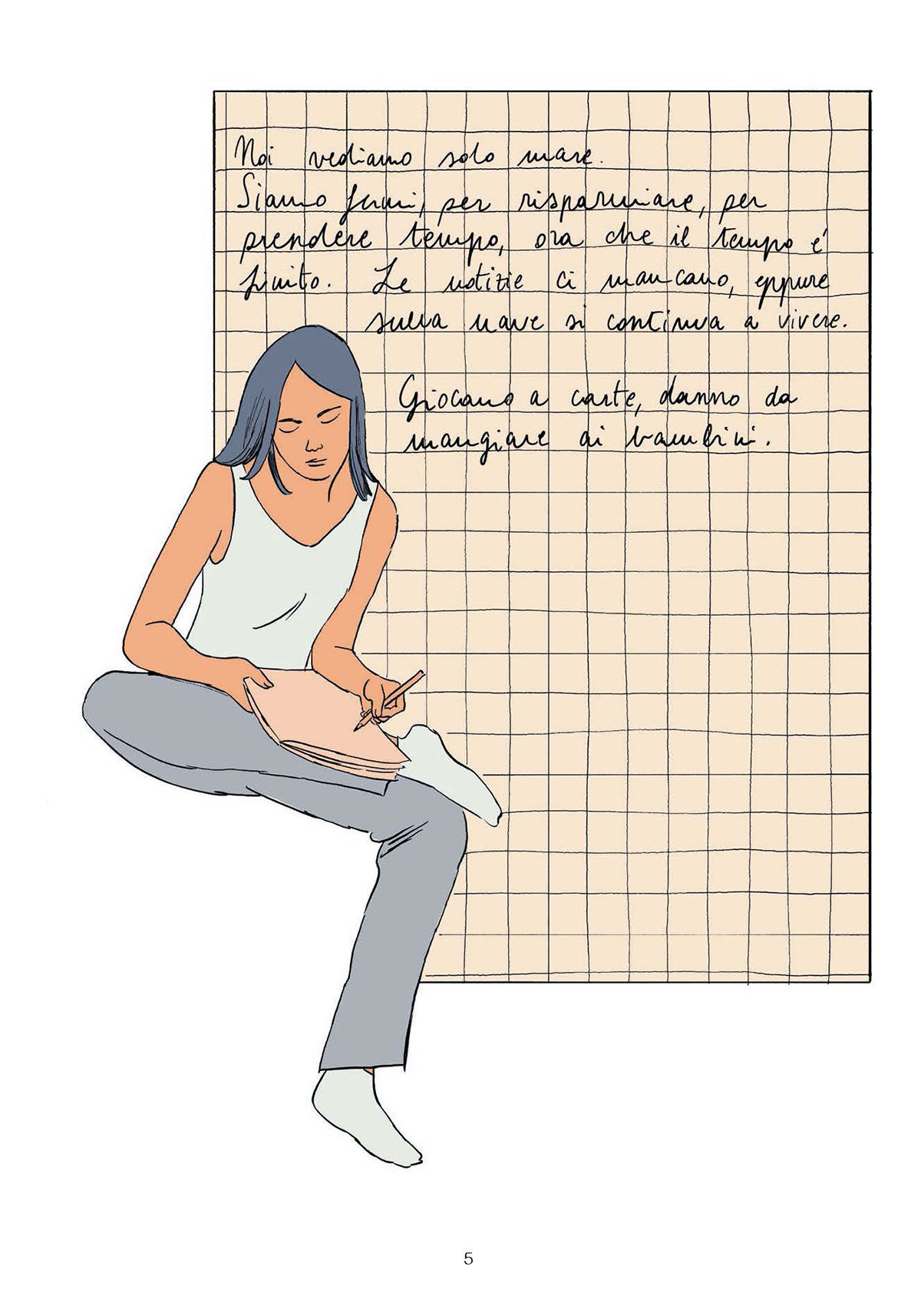 Frasi nervose, scritte in fretta, che provano a ricostruire la sua storia. La storia di una donna che porta in grembo un’altra vita, che forse non vedrà la luce in tempo. Il diario di una privilegiata che aveva tutto e ha perso ogni cosa, prima la sua famiglia e poi la possibilità di una via di fuga.