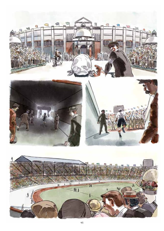 L’epica narrazione per immagini della storia di Dorando Pietri, atleta emiliano che tagliò per primo il traguardo alla maratona dei giochi olimpici di Londra nel 1908, ma sorretto dai giudici di gara perché stremato, e perdendo per questo la medaglia d’oro. Il volume ripercorre tutte le tappe che l’hanno portato fino a quel momento, facendo un sapiente e largo uso dei flashback.
