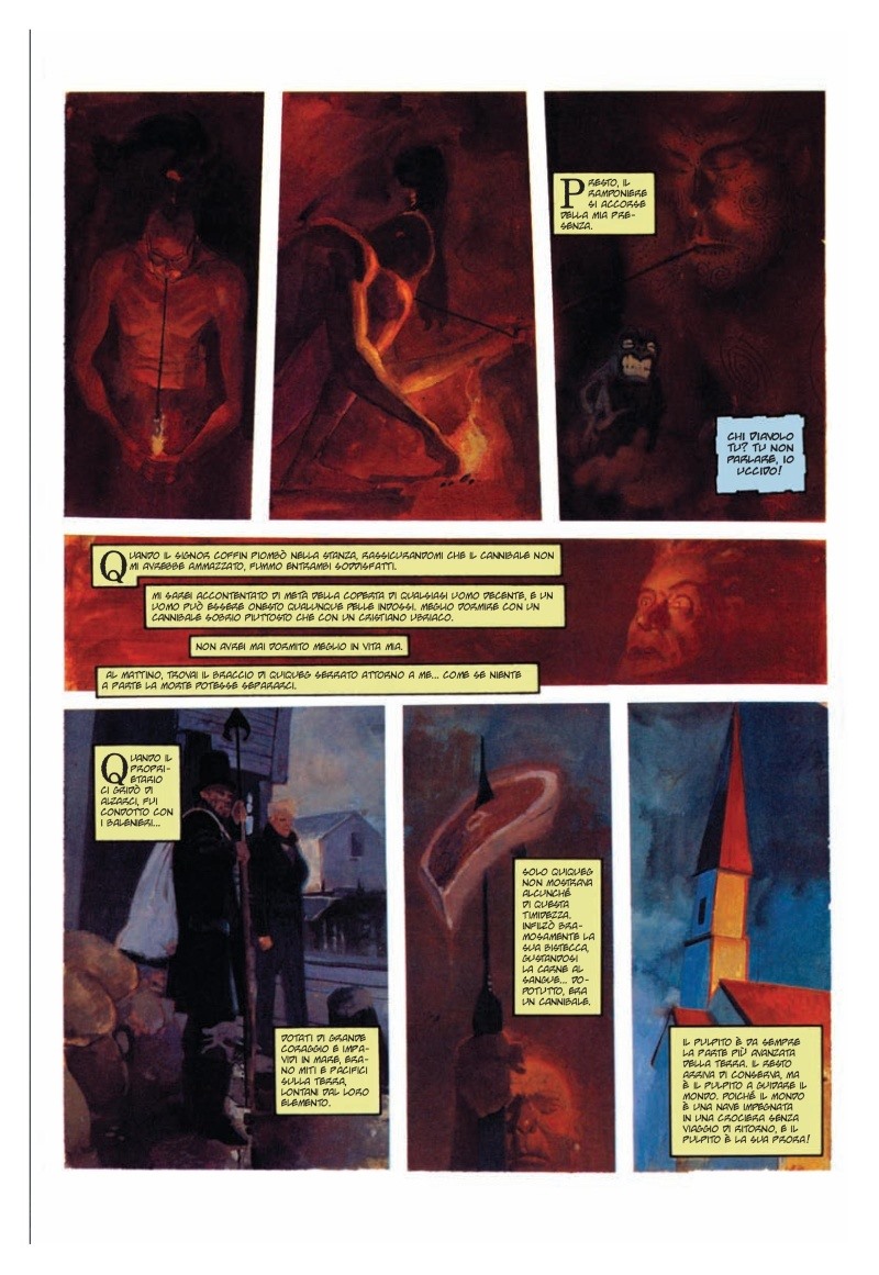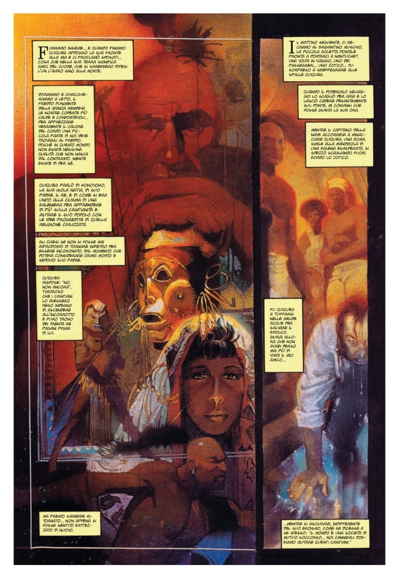 Bill Sienkiewicz (Elektra, Daredevil, New Mutants… qui all’apice della sua evoluzione artistica) ne esalta il respiro epico e simbolico, dipingendo una furiosa e mistica caduta verso gli abissi, dove eroismo e follia finiscono per confondersi irrimediabilmente.