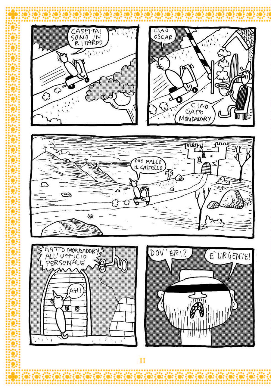 Nella seconda storia Gatto Mondadory ritorna all’avventura per affrontare sfide ancora più difficili: non più ammazzare draghi, ma chiedere soldi ai parenti. Riuscirà a tornare indenne dalla valle dei Cugini? Uno sguardo terrificante a un mondo medioevale sconosciuto ai più: non solo gnomi e trolls, ma mutui blasfemi, manager degli abissi, politiche aziendali oscure!
