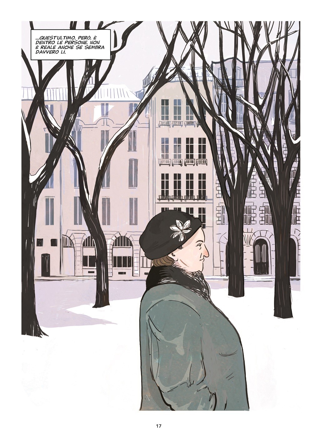 Il fumetto di Valentina Grande (Il mio Salinger, Raimond Carver, Bauhaus) e Eva Rossetti (FeministArt , Il mio Salinger) ha l’ambizione di presentarla raccontando ciò che nel tempo è stato dimenticato di lei e questo avviene attraverso la voce di un uomo, un personaggio fittizio, che per una volta incarna ciò che ci si è sempre aspettati da una donna: raccontare la personalità di un genio.