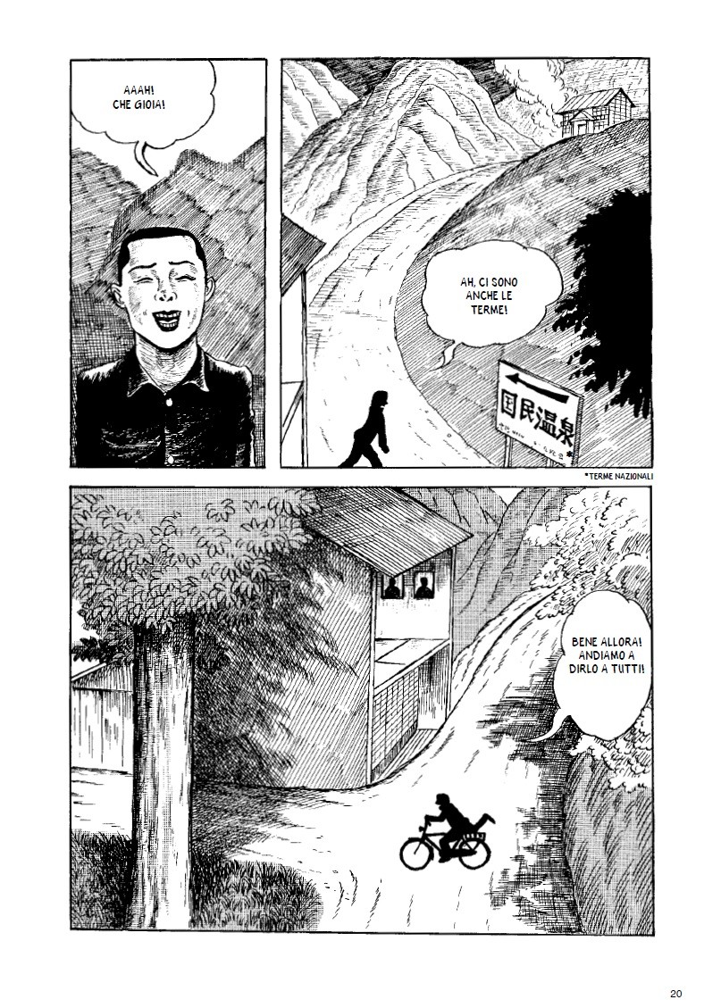 “Nella semplicità del suo disegno e della storia Tsuge raggiunge il più profondo dell’anima umana, c’è qualcosa del buddismo zen nella ricerca di sé attraverso i gesti quotidiani.” David B., autore de Il grande male