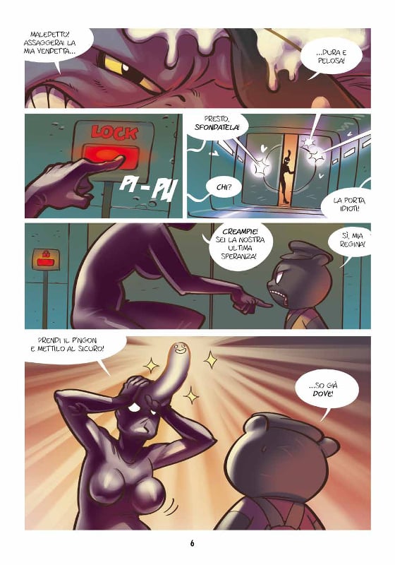Alla Regina Kon-Sumatah non resta che compiere il gesto estremo: mettere in salvo un ultimo rampollo del suo pianeta morente, l’Orsetto Sadomaso, adagiandolo in una navicella-dildo e lasciandolo alla deriva nello spazio.