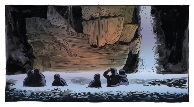 Vi mostriamo in anteprima le illustrazioni tratte da REMAKE – vhs 006, il rifacimento grafico realizzato da Tommaso Di Spigna (in arte Spugna) liberamente ispirato a The Goonies, il film diretto da Richard Donner nel 1985. The Goonies sarà presentata durante il Festival internazionale di BilBOlbul, all’interno di una mostra presso LORTICA che sarà inaugurata giovedì 19 novembre.