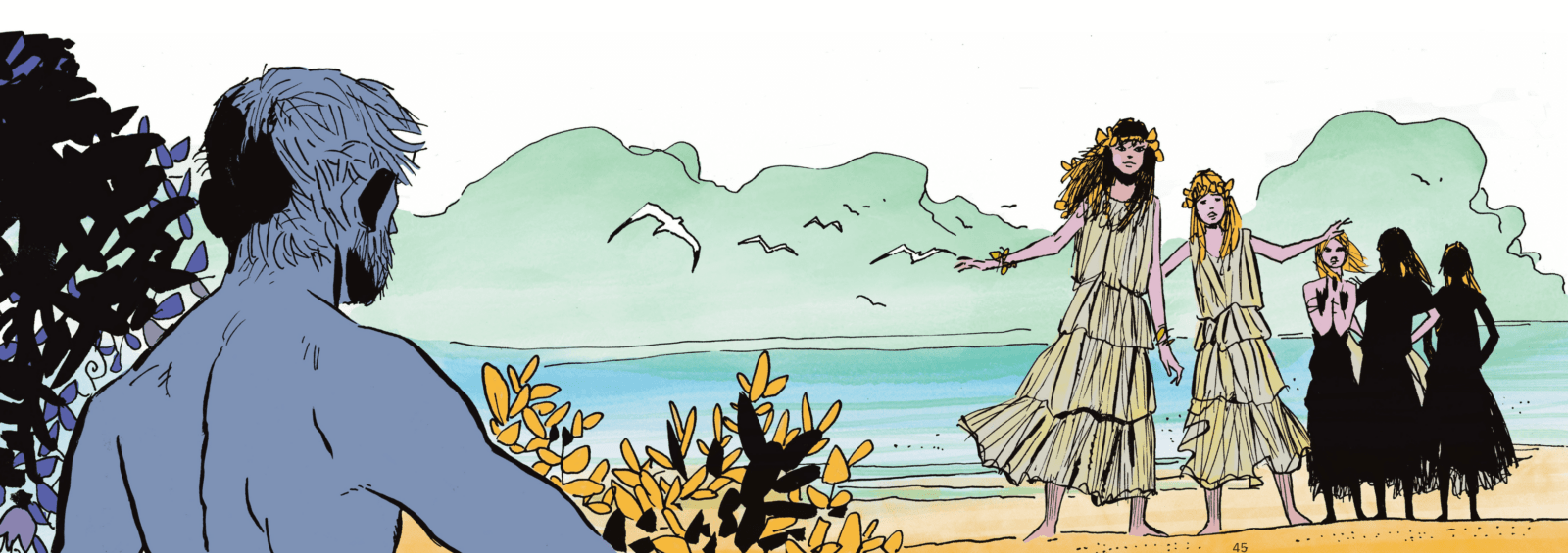 I magici disegni di Hugo Pratt – ricolorati e impaginati da Patrizia Zanotti – descrivono i toni, le espressioni, le paure, i silenzi di uno degli eroi antichi più amati e più discussi, protagonista di un percorso di vita che è da sempre simbolo di libertà e di avventura ma anche di potere e di inganno. Hugo Pratt, il padre della “letteratura disegnata” e due autori che sono stati anche suoi amici e collaboratori. Fabrizio Paladini e Marco Steiner, un giornalista e uno scrittore a bordo della barca che condurrà il lettore in una narrazione inedita e sorprendente, tra un padre e un figlio, tra Dei adirati e fanciulle vendicative, tra ragione e sentimento, tra libertà e sopraffazione. Insomma, un viaggio nella vita.