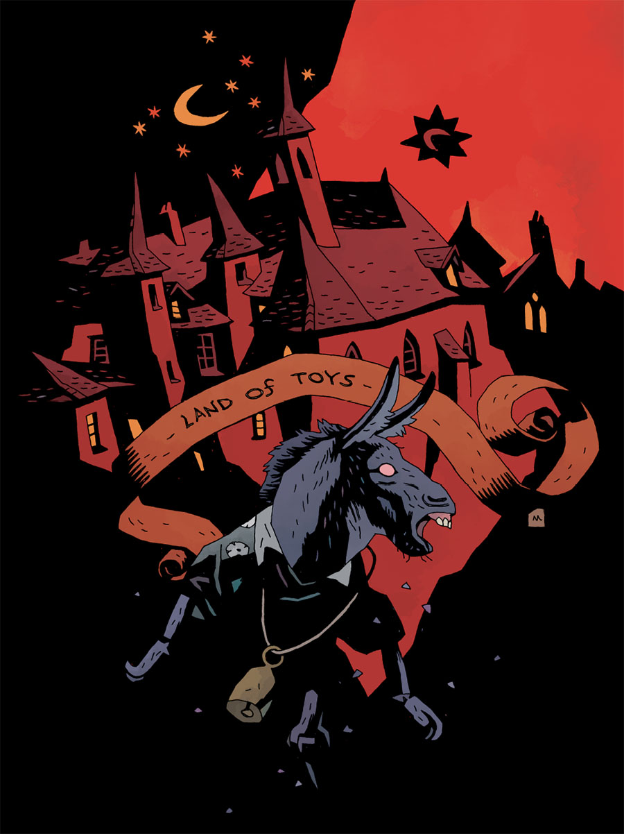 Lo stile “gotico” e pieno di neri di Mignola restituisce a Pinocchio la sua natura più profonda e inquieta, lontano da ogni edulcorazione.