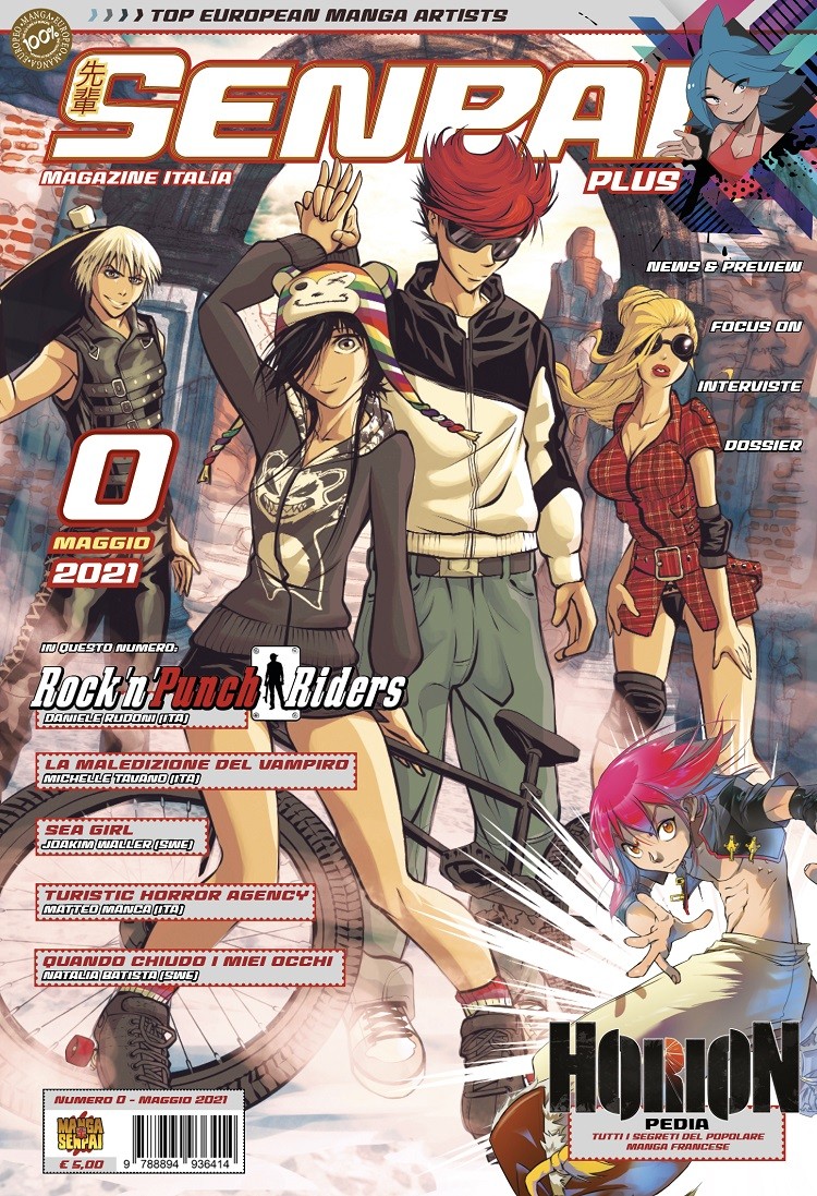 In questo numero 0 e per soli cinque euro troverete 5 manga, di cui 4 oneshot, il primo capitolo di Rock’n’Punch Riders, una delle serie che ci accompagneranno per l’intera prima season della rivista, e quasi trenta pagine di articoli su mercato, autori, esperienze, interviste e… anticipazioni. Presenteremo infatti alcuni dei manga che appariranno da ottobre a partire dal numero 1.