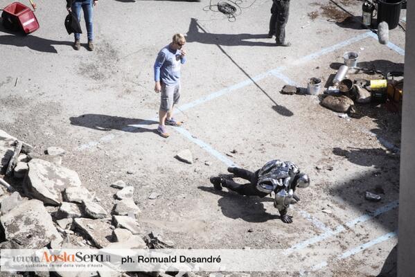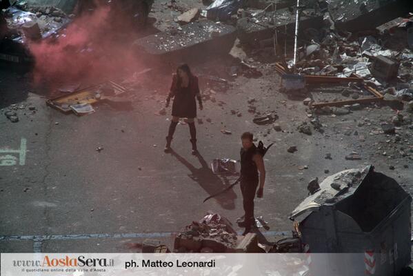 Continuano ad arrivare immagini e video dal set di Avengers: Age of Ultron ad Aosta, dove sono in corso le riprese del sequel scritto e diretto da Joss Whedon e in cui hanno fatto la comparsa gli attori Jeremy Renner e Elizabeth Olsen nei ruoli rispettivamente di Occhio di Falco e Scarlet, impegnati in alcune sequenze che vedevano l’evacuazione di numerosi civili da una zona completamente distrutta e in cui compariva anche un individuo che potrebbe essere il villain del film, Ultron, nonostante James Spader non sia presente sul set personalmente. Potete vedere i video e le immagini di seguito.