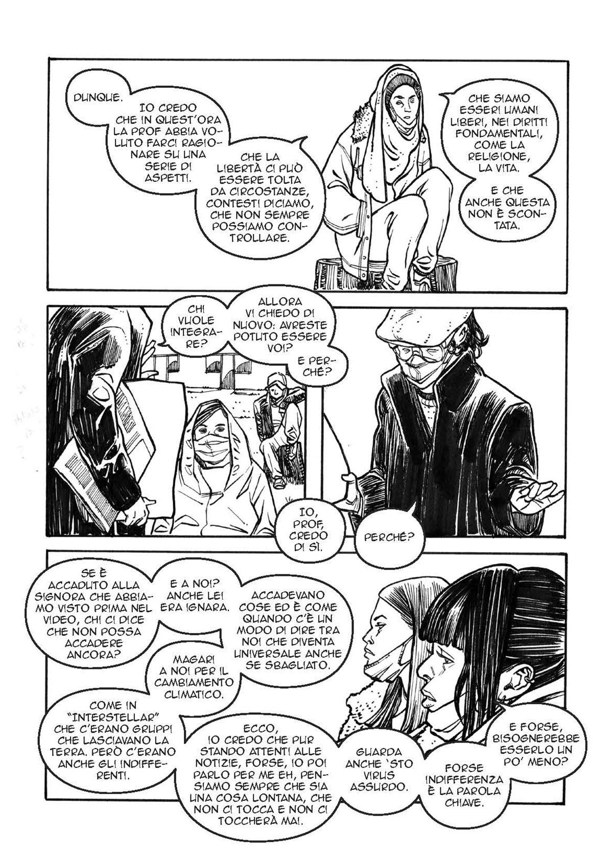 Una storia in bianco e nero in otto tavole con una classica griglia italiana a tre strisce con protagonisti un gruppo di adolescenti contemporanei che a scuola discutono con una professoressa lo sterminio ebreo operato dal nazismo tedesco durante la Seconda Guerra Mondiale.