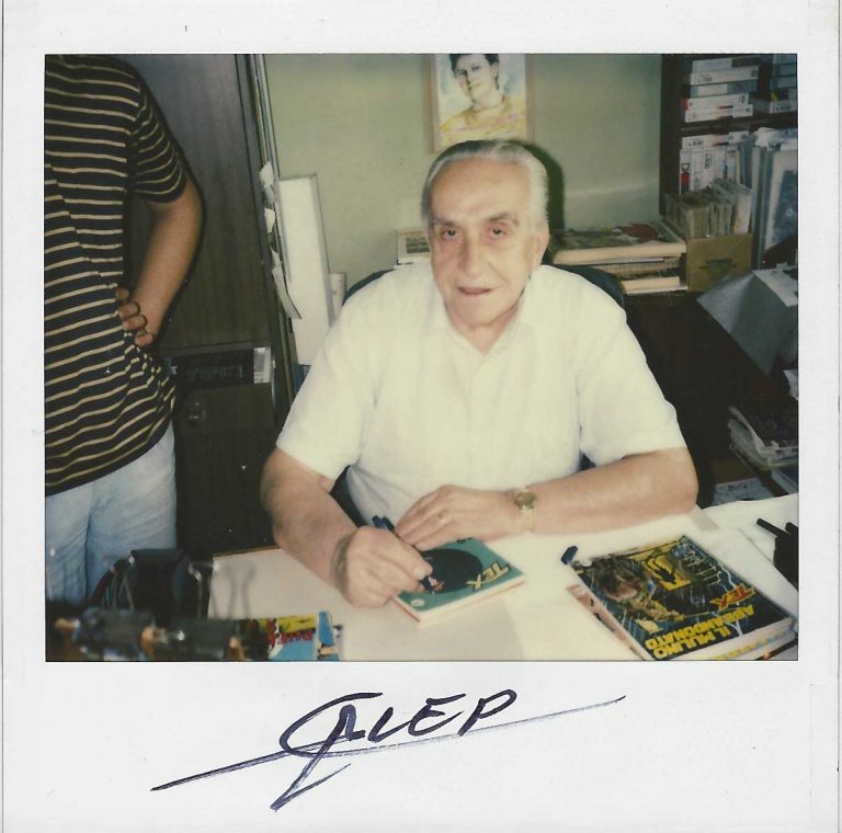 Un uomo davvero eccezionale Galep. Parlando di Tex ci disse come in realtà lui detenesse i diritti sul volto dell’eroe western in quanto creatore grafico del personaggio. Ci raccontò anche che fu lui a suggerire a Gianluigi o Tea Bonelli (non ricordo esattamente) di chiamare il personaggio Tex Willer e non Tex Killer come originariamente era previsto. A tal proposito sempre Sergio Bonelli mi disse: “È un mistero. Ci sono cose che si sono perse nella memoria. È come il logo di Tex. Mia madre dice che è stata lei a idearlo. Mio padre dice che è stato lui, che chi dice che è stato quell’altro…”.