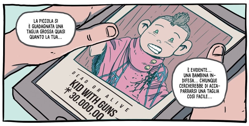 Tre fratelli fuorilegge, su un pianeta dove umani e sauri convivono (non tanto pacificamente). Ciascuno di loro ha ricevuto un teschio con poteri mistici. Uno di loro ha ricevuto anche… una bambina, che non parla e non ha nome, ma che ha imparato molto bene a sparare. Inizia così Kids With Guns, un western fuori dagli schemi, intenso e divertente, popolato da esseri extra-dimensionali, colossali creature preistoriche e spietati cacciatori di taglie.