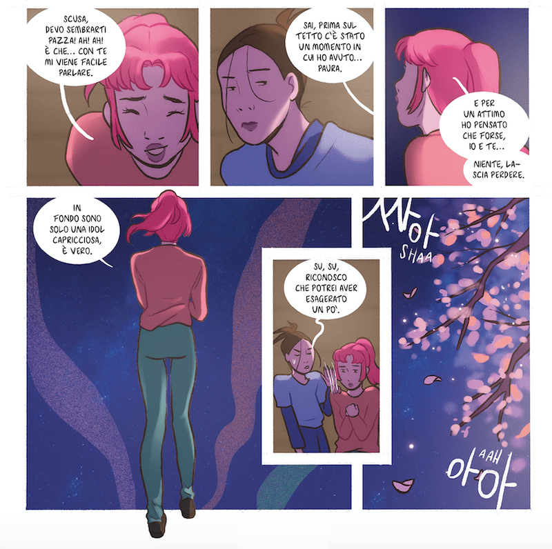 Un poema per le piccole cose, dal titolo ispirato a una canzone dei BTS, è una storia ambientata in Corea del Sud, in un tempo in cui la fine del mondo dicono sia molto vicina, data l’impossibilità di contenere di danni causati dal cambiamento climatico. Salut è una idol k-pop la cui vita di tutti i giorni è in realtà lontanissima dall’immagine patinata che la società ha di lei. Xin-Yeong è una ragazza di Seoul che ormai non ha più nulla da perdere. Le due non potrebbero essere più diverse tra loro, ma sembra che il destino abbia deciso di intrecciare le loro vite.