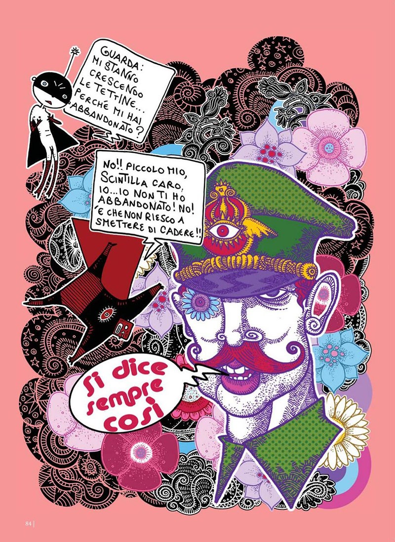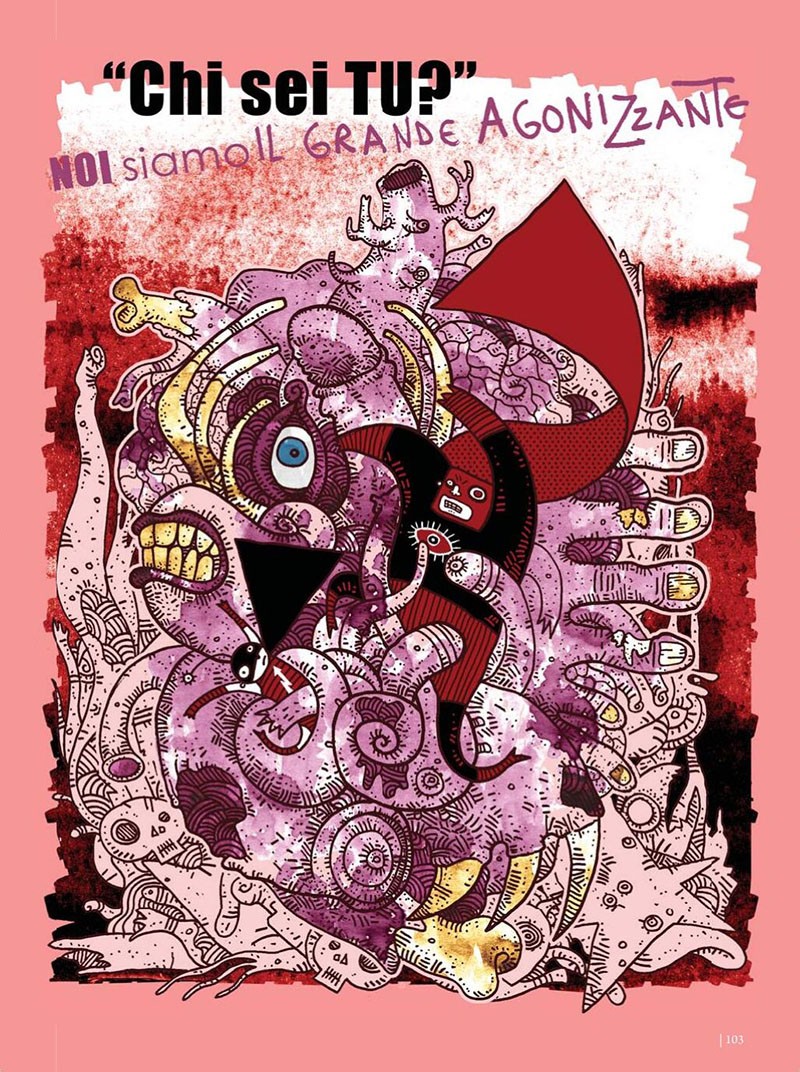 Ostinatamente underground, ha pubblicato fumetti per le peggiori fanzine e autoproduzioni del mondo, come Blaspheme, Outlaw, Sang d’Ecre, Agit POP, VoidZine, Orange Errance, Dottor Gibbò, Interiors, Nextasy, Orion, Snuff Comix, Antifa!nzine, Zapruder, Urbikerz… e per case editrici più o meno indipendenti come Sotto Mondo, Calamar, Gallucci, Barta, Il Galeone, In Your Face Comix, Yawn Comics, Paginauno, Ortica Editrice, Bordeaux… Ha disegnato volantini e magliette per centri sociali e lotte sindacali, copertine di dischi punk e meno punk, manifesti per festival blues e rave party. Due opere con il collettivo artistico Open Zoo fan bella mostra permanentemente sui muri della Biblioteca Abusiva Metropolitana e del Museo dell’Altro e dell’Altrove di Metropoliz a Roma. Per Barta ha pubblicato, con Gianluca Diana, Mariem Hassan: Io sono saharaui (3a edizione, 2023) e, da solo, una delle storie di Pasolini speciale (2023) e la prima avventura di Mascherina, “il piano nillapizzi” (indovinate un po’? esatto, 2023).