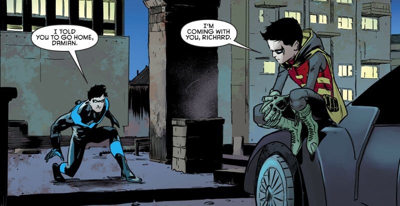 A fomentare questo mix di sentimenti c’è anche la presenza di Damian Wayne, figlio naturale di Batman e attuale Robin, che già in un segmento della lunga gestione di Grant Morrison aveva fiancheggiato Dick (ai tempi nei panni di Batman stesso). La scelta dei due avversari da fronteggiare, del resto, richiama quelle avventure, e non c’era forse omaggio più sensato per quanto riguarda l’impianto della storia.