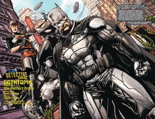 Detective Comics #27 non ospita solo queste avventure celebrative, ma prosegue anche nella proposta del lavoro che John Layman e Jason Fabok stanno conducendo sulla testata. Il crimine perfetto è la prima parte di Gothopia, nuovo evento-crossover che interesserà varie testata batmaniane ma che si svilupperà prevalentemente su DetCom.