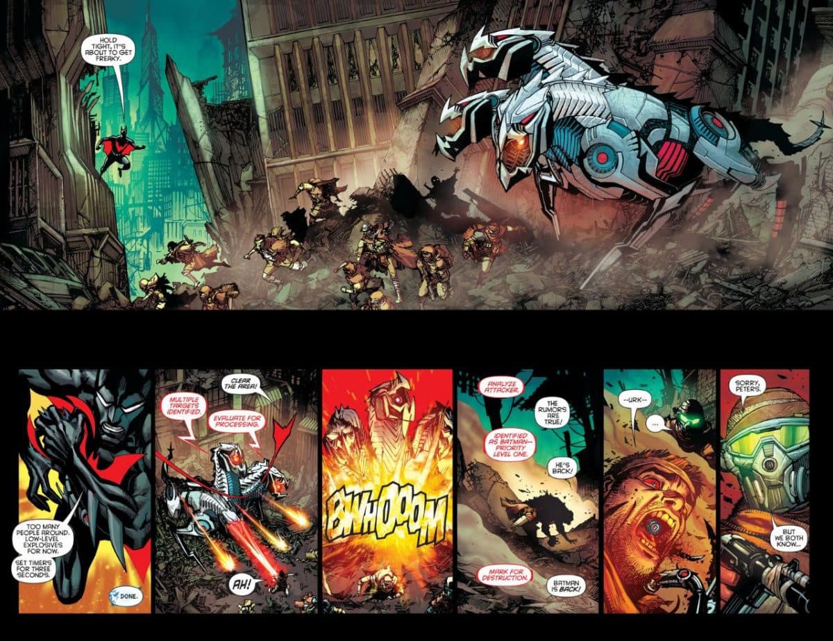La serie parte dagli eventi narrati in Futures End, la saga ambientata cinque anni nel futuro pubblicata dalla Lion ormai più di un anno fa, della quale Batman Beyond può essere considerato il seguito diretto. A vestire i panni del Batman del futuro non troviamo Terry McGinnis, personaggio che fin dalla serie animata dei primi anni 2000 è sempre stato associato a questo ruolo, bensì Tim Drake.