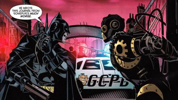 Invece, Snyder fornisce qui solo un supporto nell’ideazione del soggetto, lasciando il restante lavoro di scrittura al giovane Kyle Higgins. In effetti l’incipit funzionerebbe, con il ritrovamento di un diario risalente alla fine dell’Ottocento e legando tutto al passato di quattro famiglie influenti di Gotham (tra cui quella di Bruce Wayne, che forse sarebbe stato più idoneo a vestire i panni di Batman rispetto a un Dick Grayson visibilmente in affanno). Andando avanti nella lettura invece la storia perde abbastanza d’interesse; dalle premesse e dalle potenzialità della trama, la città avrebbe potuto essere più presente, fungere da palcoscenico vivo, permettendoci di comprendere meglio le azioni di alcuni personaggi.