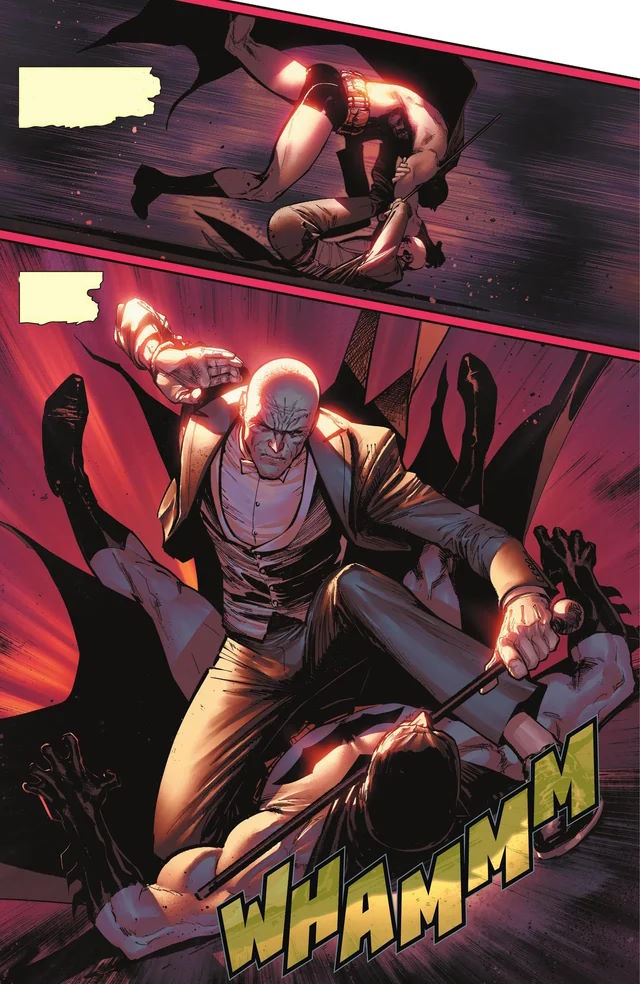 Ovvero il modo in cui King non ha gestito la propria run su Batman. E, tramite questa parodia, King motiva la propria scelta: quell’approccio porta a racconti autoreferenziali, che cioè si esauriscono nel proprio modo di raccontare, nel proprio stile e che non offrono alcuno sguardo, alcuno stimolo per vedere (ah, l’occhio!) oltre l’immagine e la trama offerta, in una sorta di parossismo didascalico di sé.